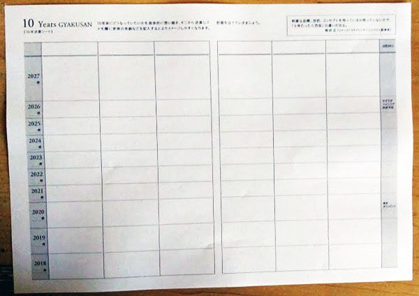 自分のぼんやりした願望を逆算手帳に書いて現実化させるものです。