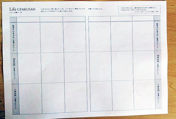 そうやってライブビジョンが出来上がったら、次にライフ逆算シートを作ります。
