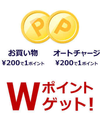 通常なら、ポイント還元率は200円=1ポイントで0.5%ですけど、オートチャージ設定していると200円=2ポイントになるので、還元率は1%となります。