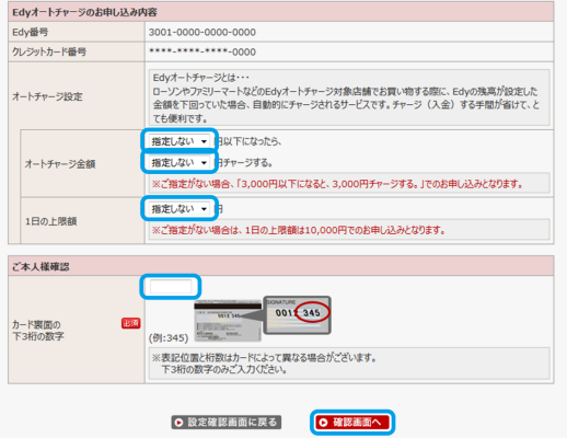 楽天Edyのオートチャージを設定するときは、1日に使える限度額を設定します。