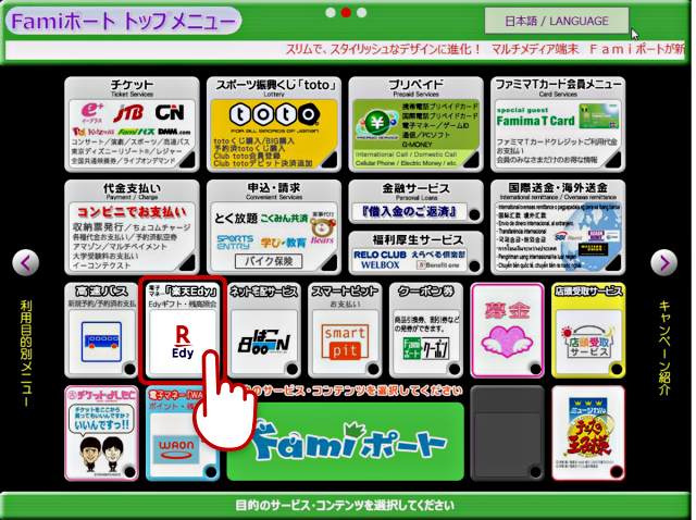 ファミリマートにあるFamiポートで設定する。楽天カードが必要になります。