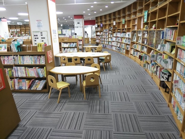 こちらは、児童向けのコーナーにある席です。図書館内の児童書や絵本、紙芝居とかを利用する人向けの席です。