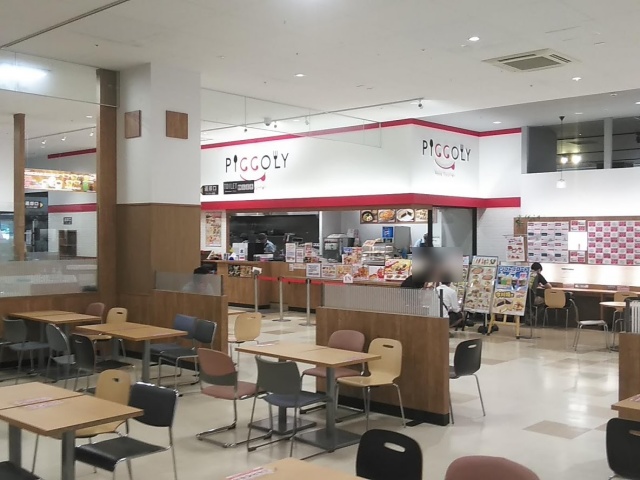 奥にオリンピック武蔵浦和店のフードコート「ピッコリー」があります。フードコートのメニューには、ラーメンやパスタ、クレープなどがありますよ。