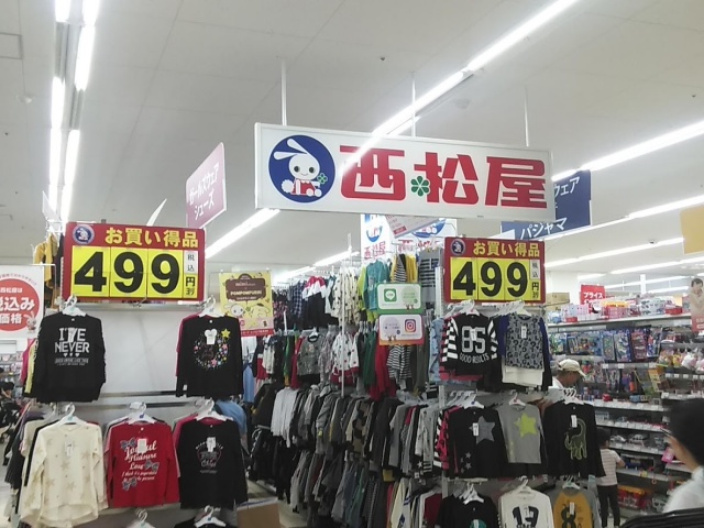 下りのエスカレーターの正面が、西松屋です。お買い得商品が、目立っています!