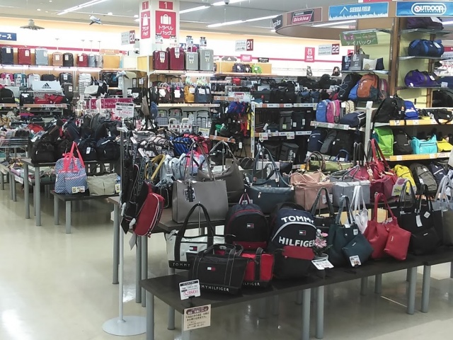 こちらは、バッグのコーナーです。リュックから、キャリーバッグ、ビジネスバッグなどバリエーション豊富ですよ。