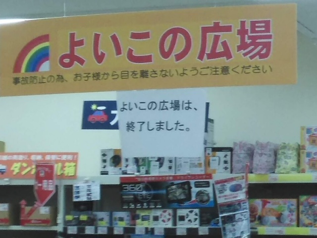 「よいこの広場」というキッズスペースが、メガネ売場の横にあったのですが、現在は、なくなってしまってしまい、わずかなスペースのおもちゃ売場になっていました。