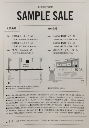 【2018年リンクセオリージャパンのサンプルセール情報】