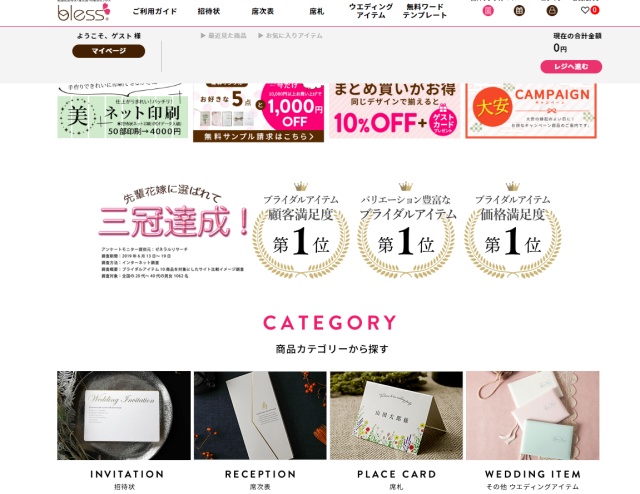 bless(ブレス)は、設立から12年以上、年間16,000人の利用者がある老舗です。常時50種類以上のオリジナルデザインアイテムが用意されているので自分の要望に合ったものが作れます。また、ホテルやゲストハウスなど結婚式場にも得意先が多いのが信頼度が高いのも嬉しいです。