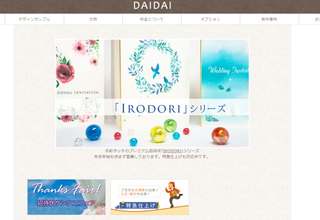DAIDAIは、手軽なはがきタイプから返信用はがき付きの往復はがきタイプやフォーマルな封書タイプなど、用途や目的に応じて対応できるところが特徴です。また、印刷する内容が自分の自由にカスタマイズできるところも魅力です。さらに挨拶文の文例集が豊富なので、悩まずに済みますよ。修正も無料対応なので安心です。