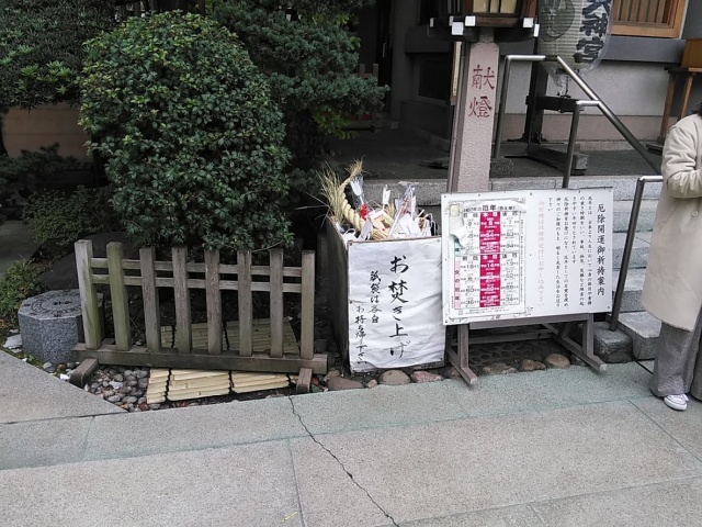 芝大神宮でお守りを返納する場合、お参りする場所の左手に「お焚き上げ」用の箱があります。