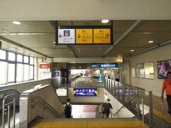 武蔵浦和駅の改札を出て、左斜め前に向かうと東口へ出る階段を降ります。