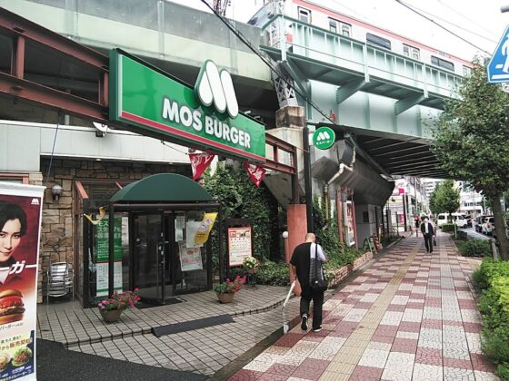 すると田島通りにぶつかるので、左折するとモスバーガーが見えてきますよ。