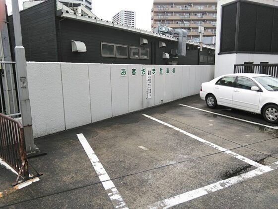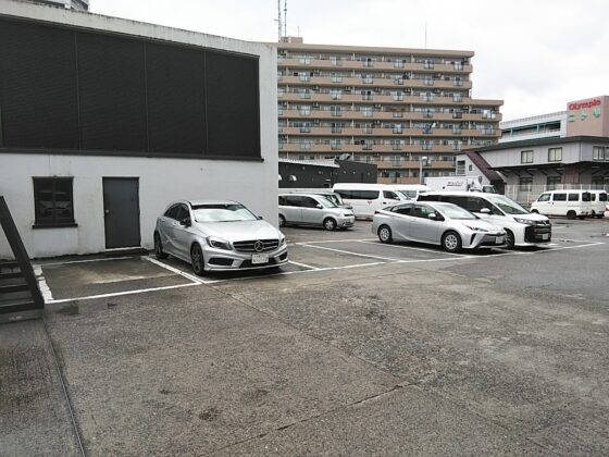 駐車場は、このスペースの奥にもあり、白線で囲ったエリアに、停められます。(黄線枠は、業者専用です)