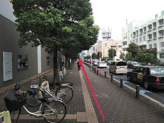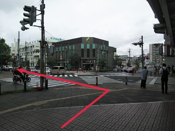 階段を降りたら、スクランブル交差点があり、それを左折します。