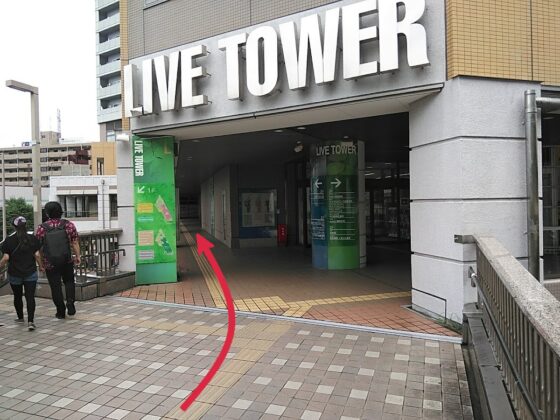 左側をライブタワー武蔵浦和沿いに歩きます。