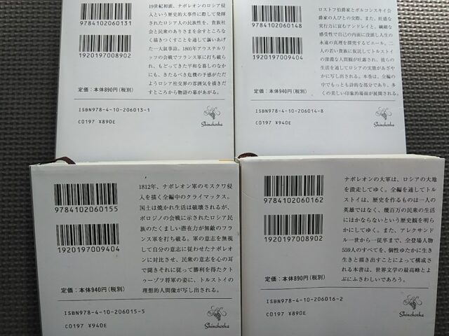 なので、KINDLEなどの電子書籍か「戦争と平和」全巻セットの中古本で購入すると定価で全巻購入するより、安く入手できますよ。