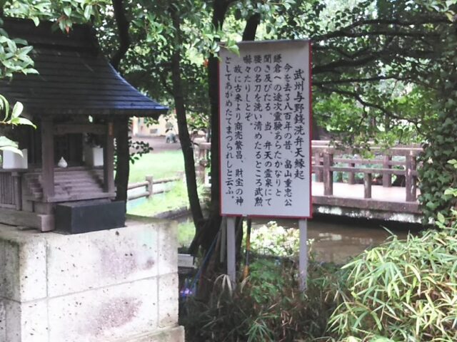 池の中央には小島があり、その上に「武州与野銭洗弁天」が祀られています。