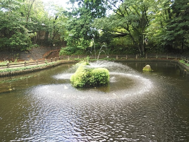 池には噴水があり、周囲は木々が茂っていて、日差しがさえぎられているせいか、どこか厳かな雰囲気があります。