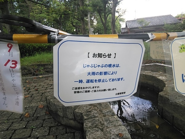 ただ、あいにく僕が行ったときには、大雨の影響で、じゃぶじゃぶの噴水は運転中止になっていました。(涙)