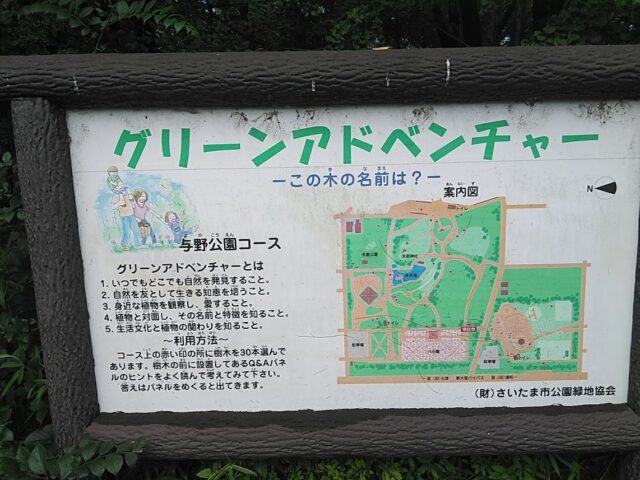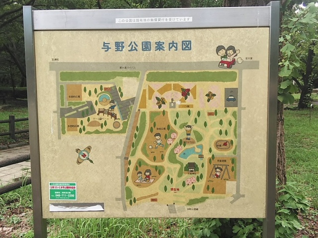 与野公園の園内地図です。マップの左手にある小さい公園は、「与野森林第2公園」と呼ばれています。