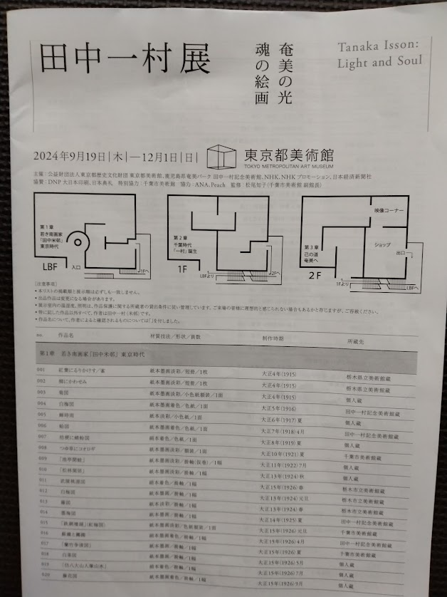 田中一村展の展示フロアは、地階のロビーから入り、3フロアに分かれています。