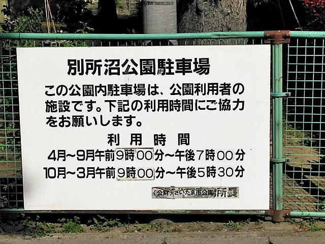 別所沼公園駐車場の利用時間は季節によって異なります。