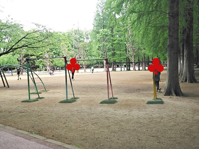 北側広場、南側広場は、広いスペースが自由に使えます。遊具も南側広場の端っこに鉄棒と雲梯があるだけなので、それ以外はどんな遊びもできます。