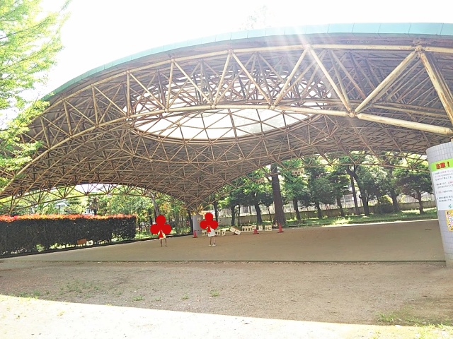 別所沼公園には、屋根付きの遊び場もあります。この、広場は、一時避難場所としての役割があります。