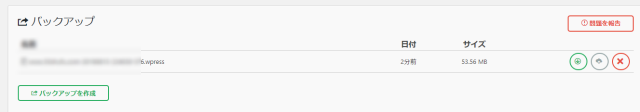 最後にバックアップの項目を確認するとこのようにバックアップが完了されています。
