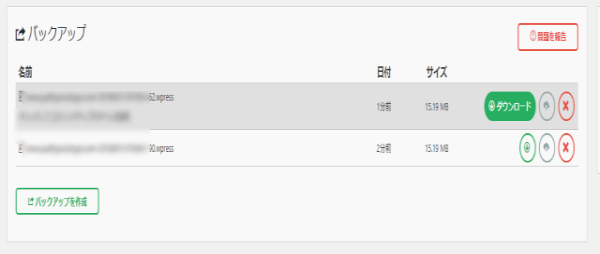 バックアップ→右のグリーンの印をクリックするとダウンロードと表示されます。