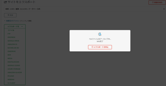 するとこんな画面に切り替わり、エクスポートが開始されます。