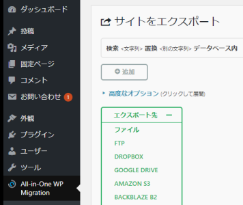 「All-in-One WP Migration」でバックアップを取る