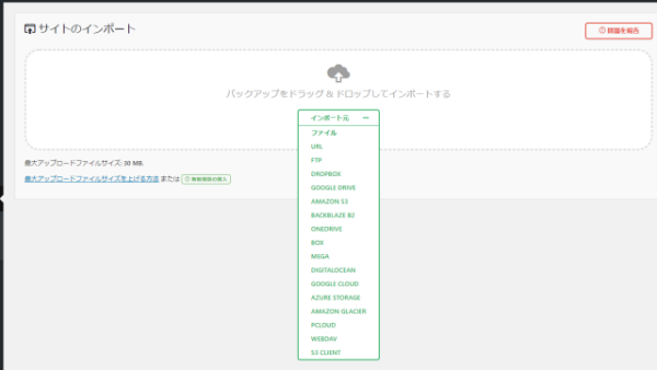 ⑦「All-in-One WP Migration」を使って、ダウンロードしたファイルをインポート